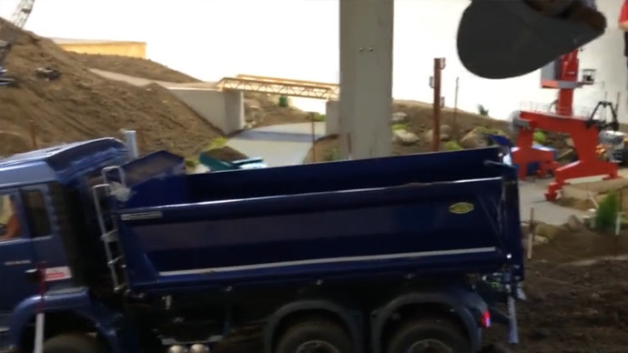 小人国的施工工地 卡车 挖掘机 工程车一个不少