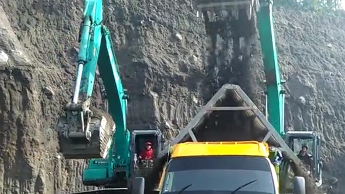 套路深啊,2台挖掘机这样给一台卡车装土!