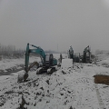 挖掘机下乡工作视频:池塘边挖掘机挖土铺路