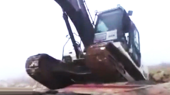 【眼界】挖机大了上个车都难 七倒八歪!!