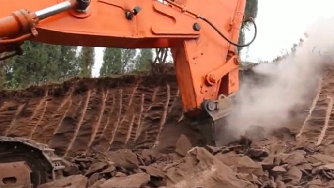 挖掘机的强大功能 用斗子当簸箕筛料
