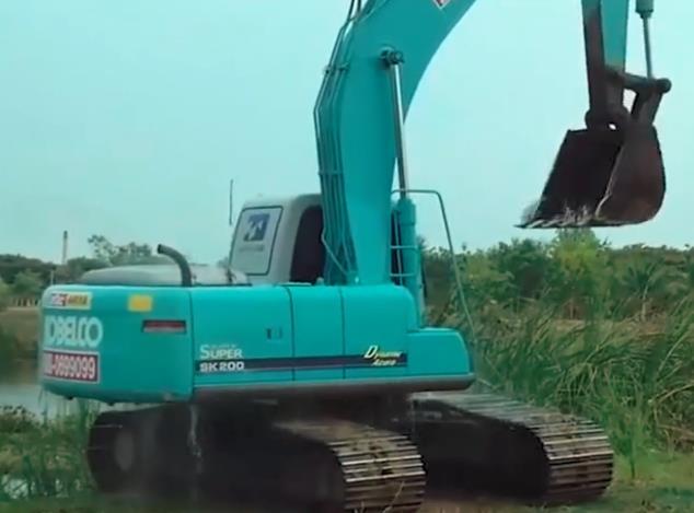 机械百科:实拍-老司机开挖掘机师在河边“洗澡”