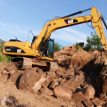 实拍:卡特85C挖掘机挖石头装车,沃尔沃卡车“扛”的动
