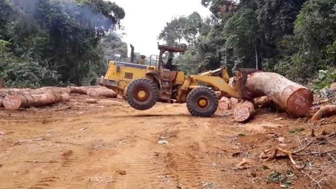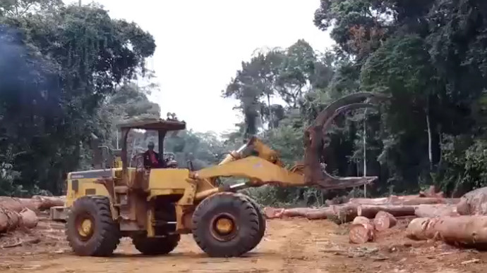 【热门】这一根圆木有多重?装载机为了搬运它,轮胎都翘起来了
