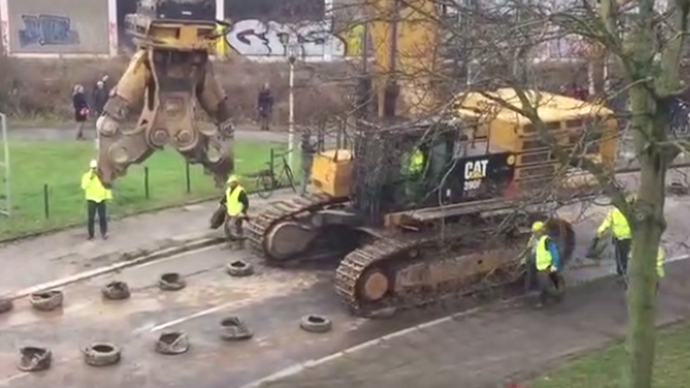 原来挖掘机行走还要垫轮胎,在中国怎么从来没见过