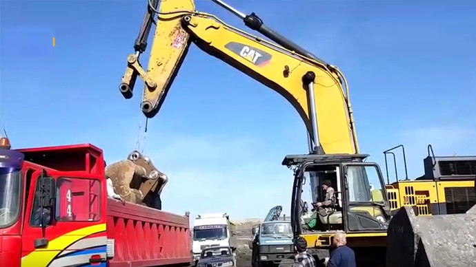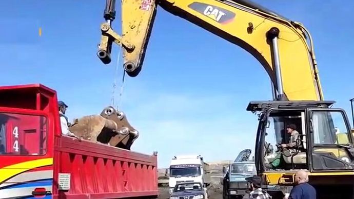 【眼界】卡特彼勒365C分分钟搞定三台车 真是挖机界的扛把子