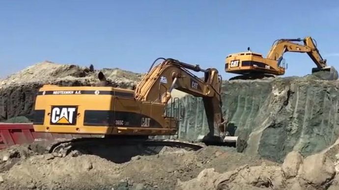 【眼界】三辆365C挖掘机一起工作 场面壮观