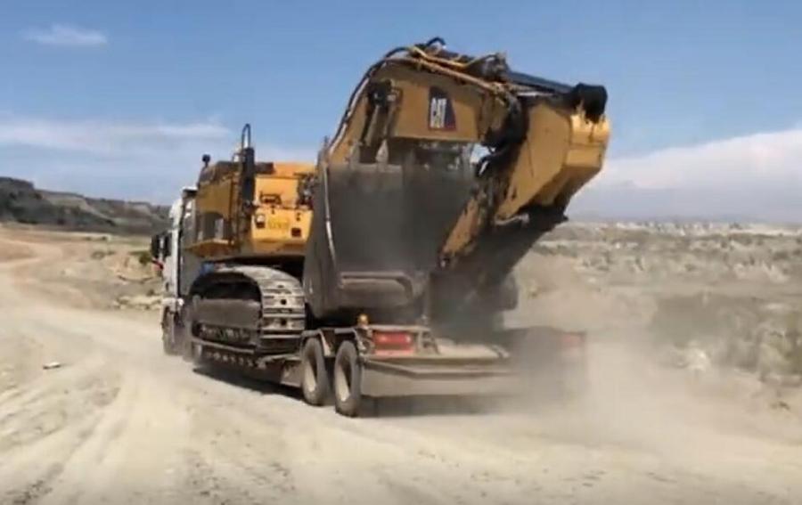 运输车装载CAT卡特365C,司机简直就是教科书级的操作