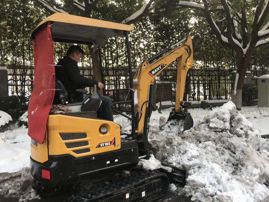 开挖机游全国的路上跟环卫阿姨一起清理积雪