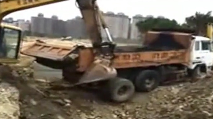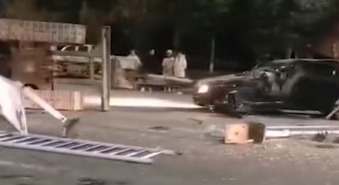 四两拨千斤,小汽车干翻20吨挖掘机!现场一片狼藉!