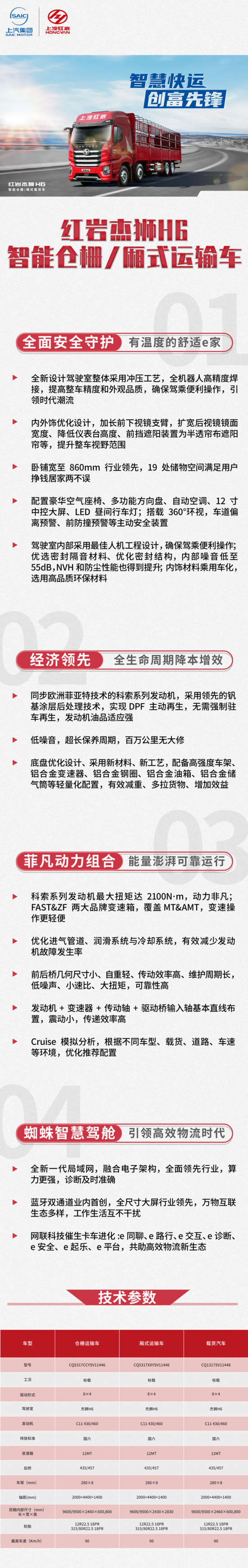 一张图看懂红岩杰狮H6智能仓栅/厢式运输车