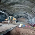 挖掘机师傅为东风卡车装泥沙,装过满了