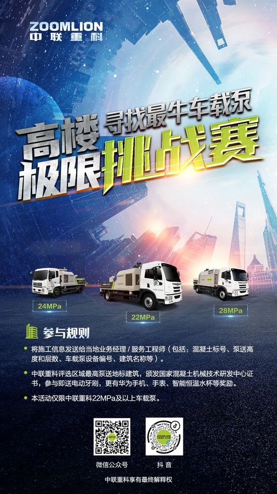 寻找最牛车载泵!中联重科“高楼极限挑战赛”等你来战!!!