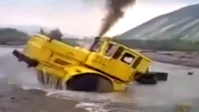 拖拉机被淹成这个样子,还能开上来,民间牛人太多了!