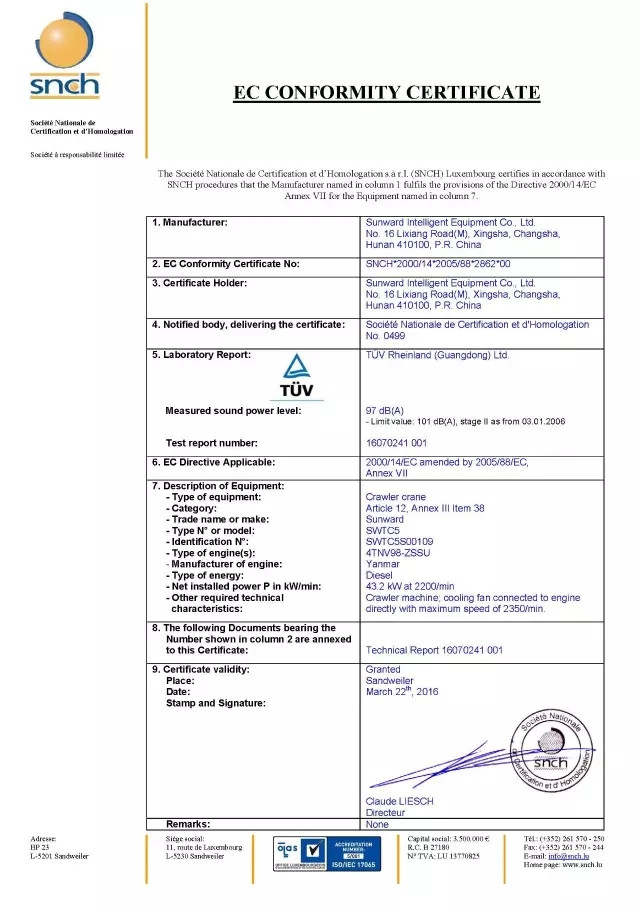 山河智能起重机贴加CE标志 获得欧盟市场“护照”