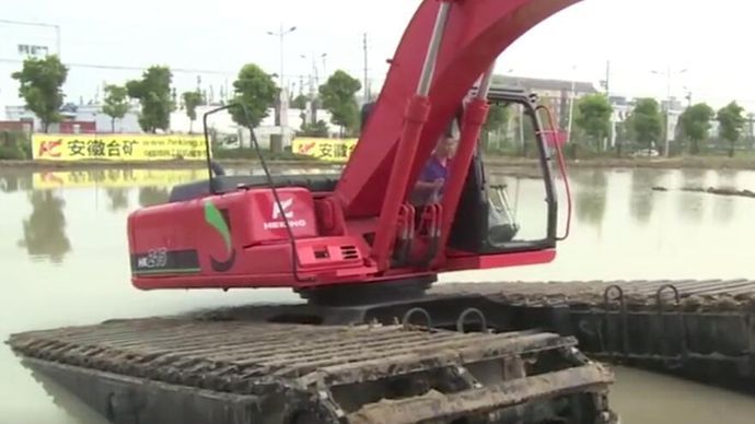 挖掘机也能\"水上漂\" ——揭秘水陆挖掘机