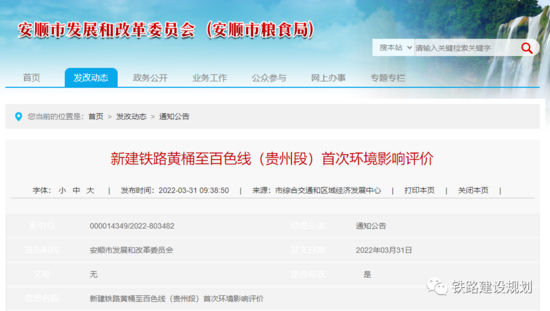 黄桶至百色铁路(贵州段)首次环境影响评价公示