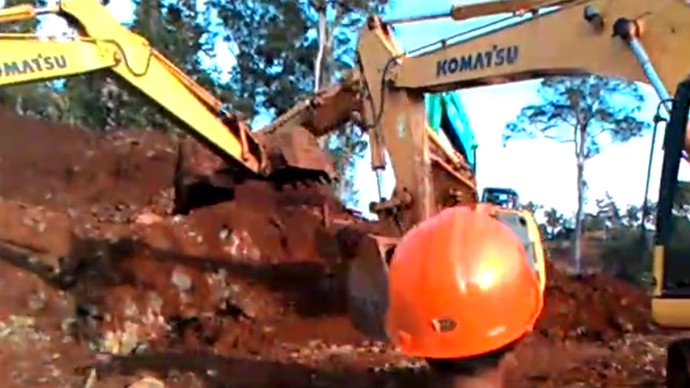 挖掘机栽了个大跟斗,幸好有3位工友帮忙