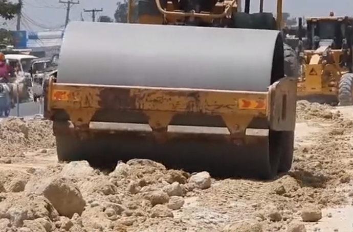 太硬核了!20吨的压路机遇到一块大石头,司机操作贼猛!