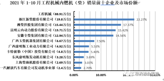 数据 | 工程机械用柴油机销量前十企业及市场份额