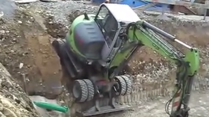 命悬一线:大挖机深陷泥潭,小挖机来相救