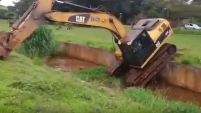 最佳挖机操作员,2米深的河道,爪子一伸就上岸了?