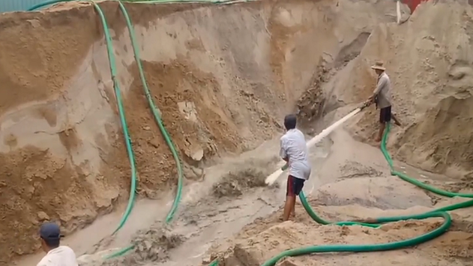 越南人是这样卸沙子的?太涨知识了,网友:是因为买不起机械