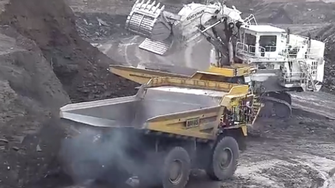 特雷克斯大型挖掘机RH120E装车,这家伙就像是一头“巨兽”