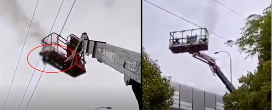 恐怖,无锡一高空作业车作业时不慎碰到高压线