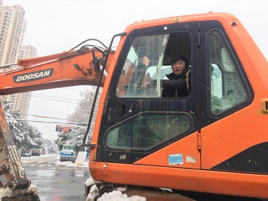 90后的挖掘机司机:开斗山轮挖奋斗在扫雪一线!