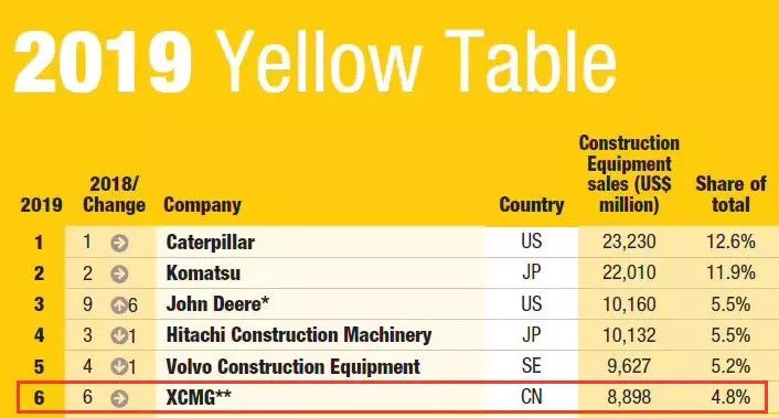 强者恒强!徐工稳居全球工程机械排行榜第六位!