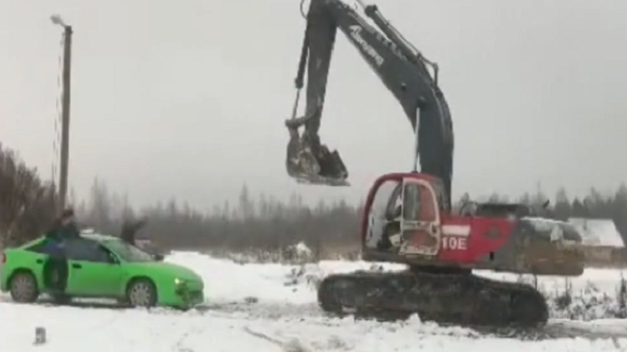 国外轿车司机暴打挖掘机司机之后 记录仪拍下了恐怖一幕!