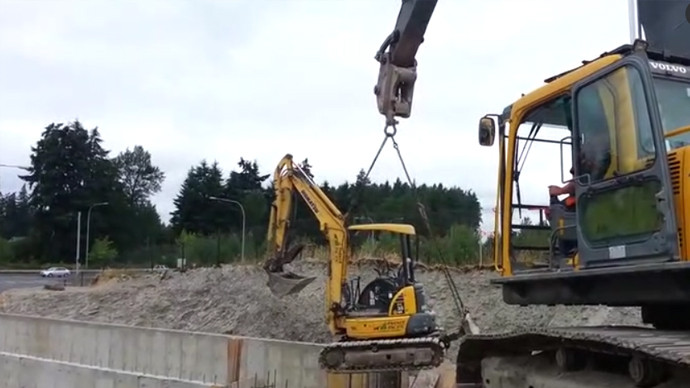 挖土机卸掉挖斗就可以干吊车的活,这个工人脑子真灵活