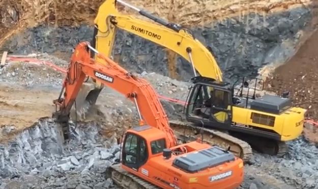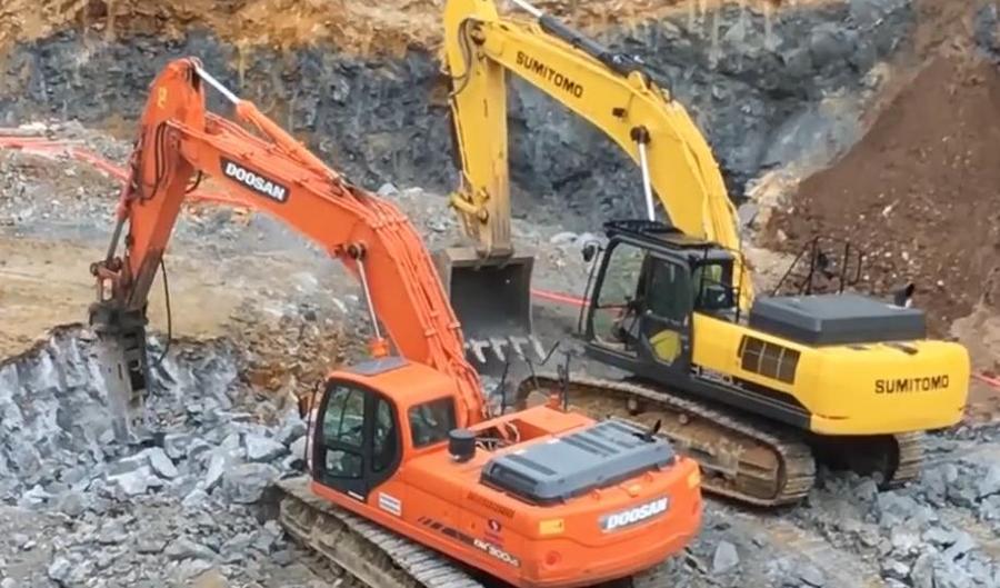 两台挖掘机在一起干活,一台斗山,一台住友,你想开哪台?