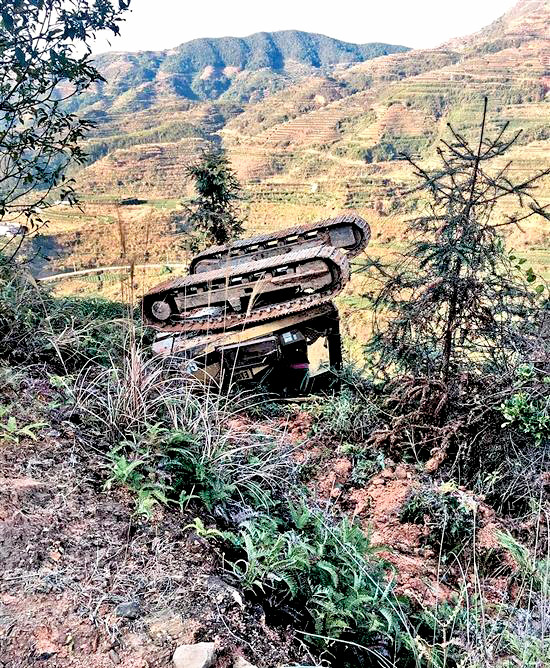 挖机自己翻进山沟,原来是酒鬼手贱偷开所致!