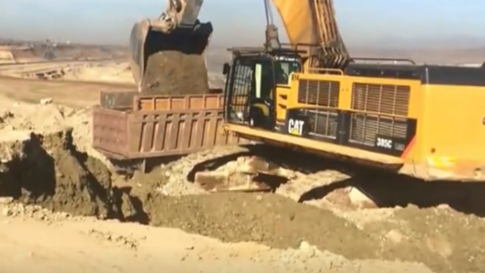 卡特挖掘机施工装车作业