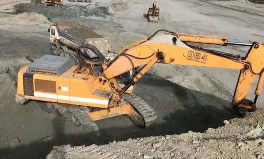 挖掘机卸火车大长腿,骑火车卸火车,卸料机