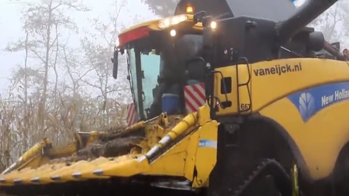 纽荷兰玉米联合收割机这么强?能见度仅10米的雾天一次收割8垄!