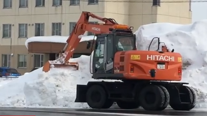 液压轮式挖掘机日立145W在除雪作业 北海道名寄市