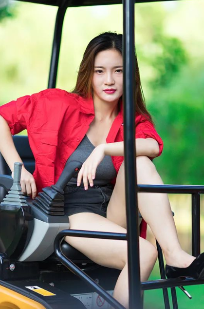 为挖掘机打气,美女配挖机