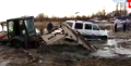 工程机械陷入泥坑脱险 各种机械工程展现脱险技能