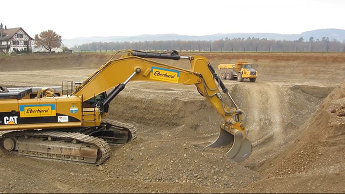 国外工地实拍,卡特挖掘机装车作业视频表演