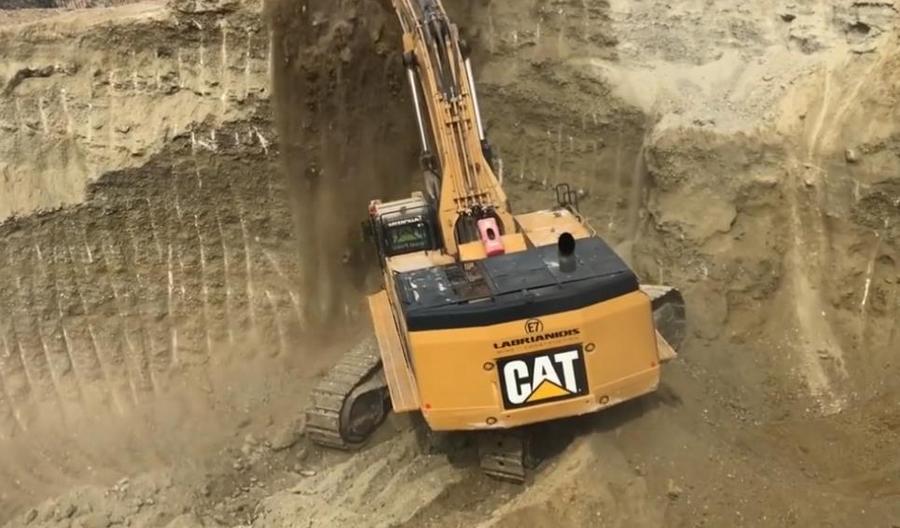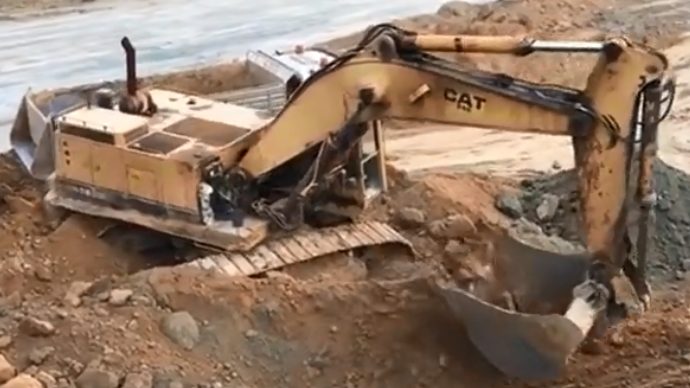 卡特挖掘机好强的动力,干这活,直接用驱动带着走