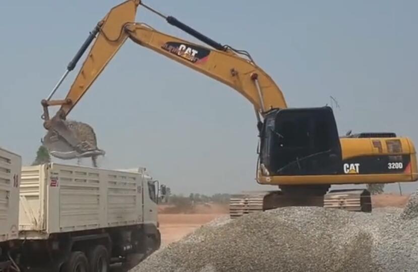 国外工地实拍,卡特挖掘机装车作业视频表演