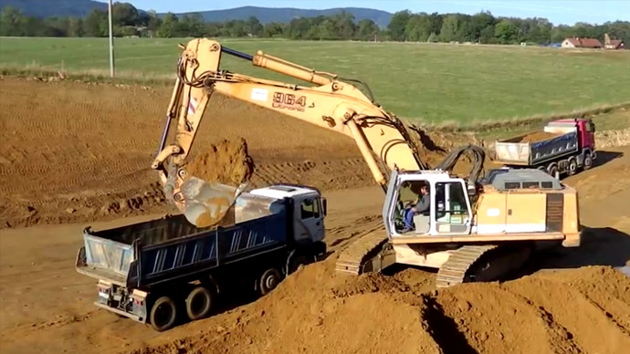 利勃海尔974挖掘机一斗几方?这自卸车竟然能装5斗