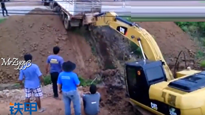 【眼界】卡特挖机深水遇难 好基友前来解困