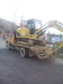 重型运输卡车拖家带口,一架卡特挖掘机和两架卡特推土机