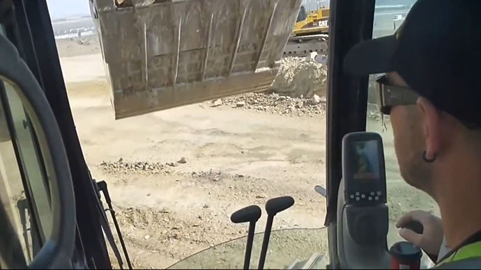 工地实拍:卡特重型挖掘机左右装车,高效率挖土