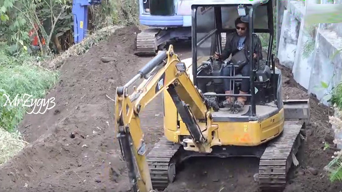 卡特306挖机平水泥修路