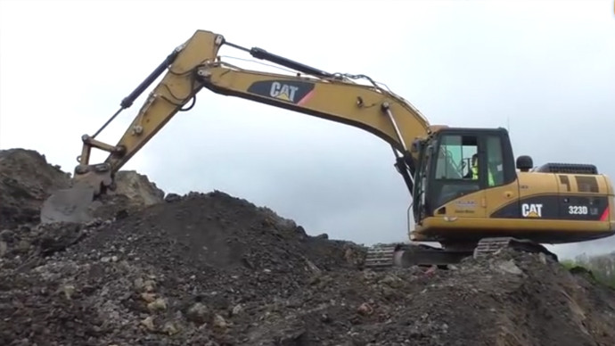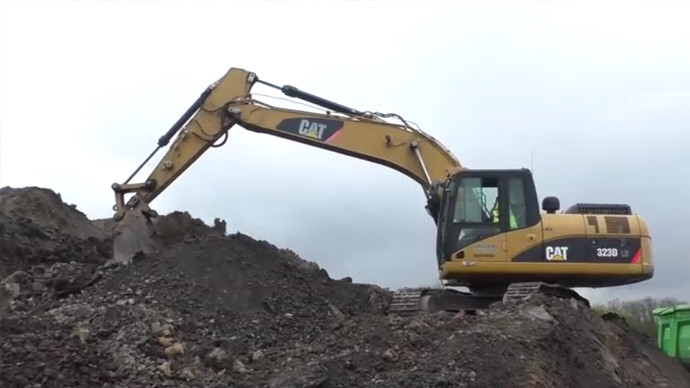卡特彼勒323D挖掘机挖土,大货车配合运料